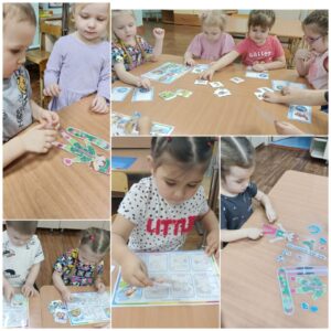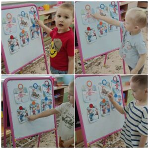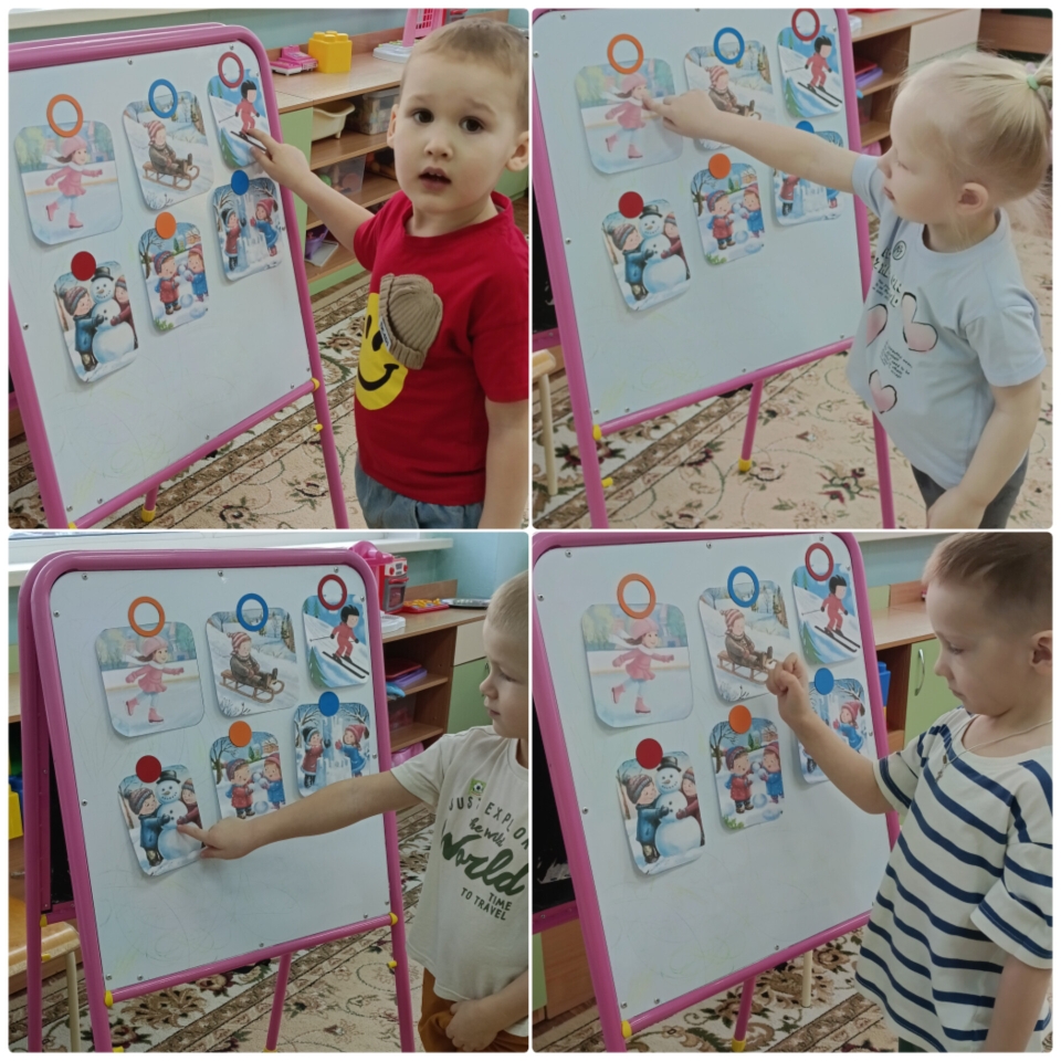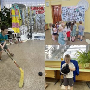 Развивали логическое мышление с помощью дидактических игр про зимнюю одежду и инвентарь, рассматривали картинки и обсуждали их, делали аппликацию «Санки» и лепили «Снеговика-спортсмена». Обогатили словарный запас «зимними спортивными» словами.