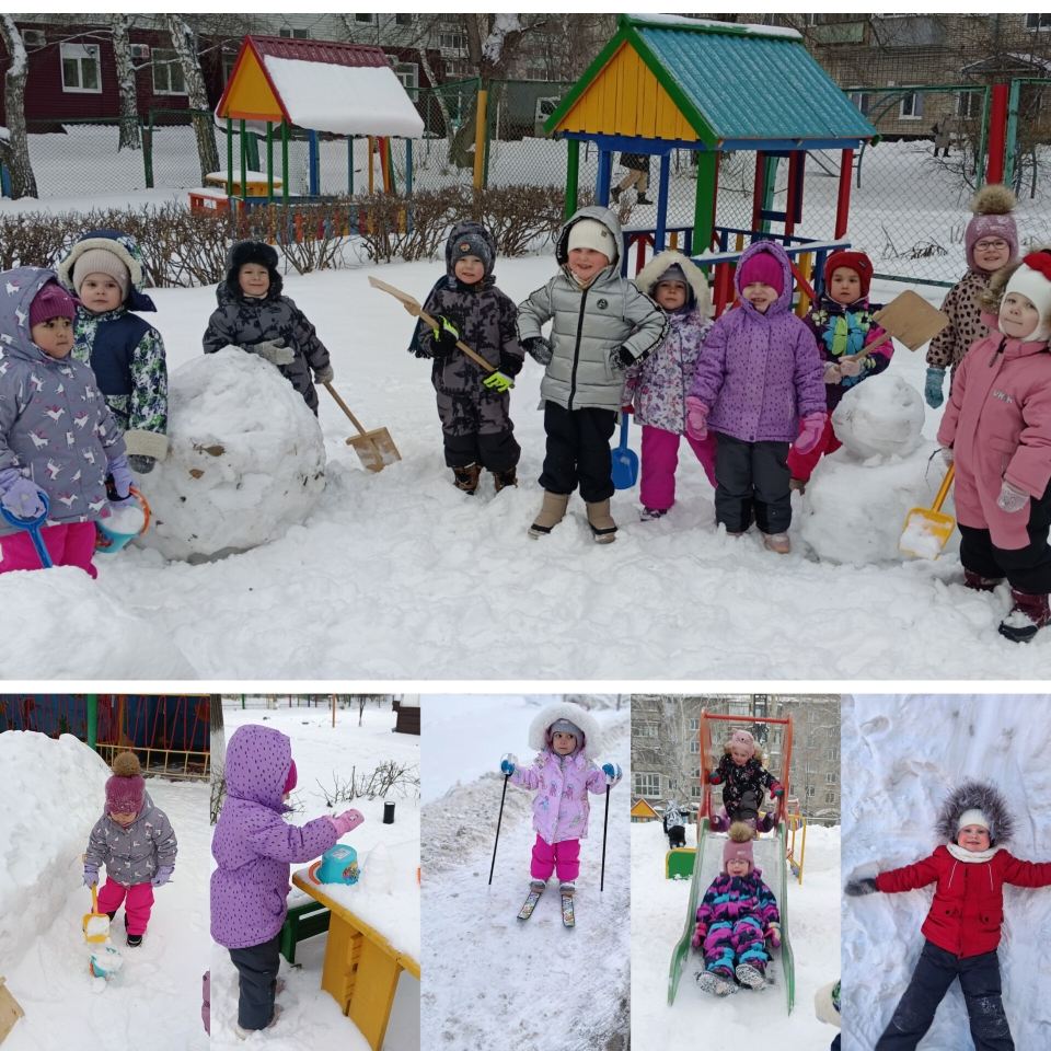На прогулке весело играли в снежки, лепили снеговика и катались с горки.
